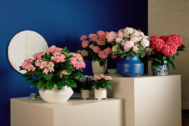 The intense colours and large flowers combined with dark green foliage make Anda a striking hydrangea. The structure of the plant is moderately compact and the bulbs of the flowers are uniform in colour and size during flowering. The plant grows in a V-shape, allowing efficient arrangement of growing space in the later cultivation phase.